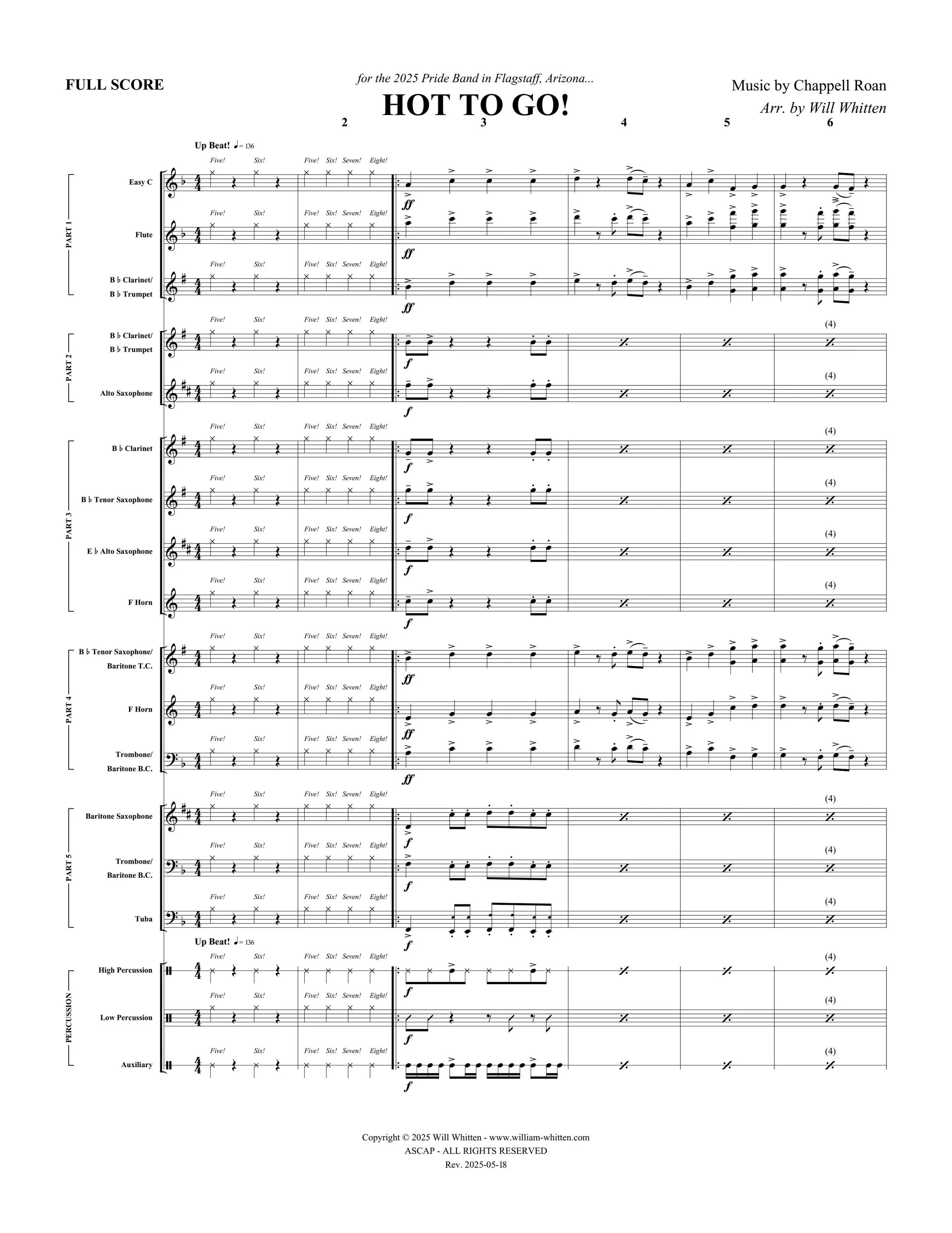 COMPOSITIONS COMPOSITIONS COMPOSITIONS Categories: All Woodwind Ensemble Brass Ensemble FLEX Marching Band Solo Wind Band Strings Grade 6 Grade 5 Grade 4 Grade 3 Grade 2 Chamber ALL WORKS All Woodwind Ensemble Brass Ensemble FLEX Marching Band Solo Wind Band Strings Grade 6 Grade 5 Grade 4 Grade 3 Grade 2 Chamber NOCTURNE OF ICE by Eric Barone - for String Ensemble $0.00 Add To Cart Added! Custom Marching Band Arrangement Consultation $0.00 FREE CONSULTATION MEETING Added! I GOT 5 ON IT by Luniz and Michael Marshall - Marching Band Arrangement $0.00 Add To Cart Added! RAIN ON ME by Ariana Grande and Lady Gaga - Stand Tune FLEX Band Arrangement $0.00 Add To Cart Added! PINK PONY CLUB by Chappell Roan - Stand Tune FLEX Band Arrangement $0.00 Add To Cart Added! IT'S RAINING MEN by The Weather Girls - Stand Tune FLEX Band Arrangement $0.00 Add To Cart Added! INDUSTRY BABAY by Lil Nas X - Stand Tune FLEX Band Arrangement $0.00 Add To Cart Added! HOT TO GO! by Chappell Roan - Stand Tune FLEX Band Arrangement $0.00 Add To Cart Added! COZY by Beyonce - Stand Tune FLEX Band Arrangement $0.00 Add To Cart Added! THRUWAYS - for concert band $95.00 Add To Cart Added! FRELIACH NO. 1 - for concert band $95.00 Add To Cart Added! KLEZMORIM - for wind ensemble $250.00 Add To Cart Added! FLUGELHORN SONATA - for solo flugelhorn and piano $50.00 Add To Cart Added! HARMONIOUS - for clarinet choir $35.00 Add To Cart Added! INFERNO - for trombone trio $35.00 Add To Cart Added! MALAGUENA - for horn octet $35.00 Add To Cart Added! NUAGES GRIS - for string quartet $25.00 Add To Cart Added! ZENITH - for brass quintet $35.00 Add To Cart Added!